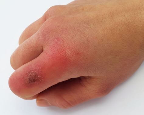 *조직 손상 심한 경우 : 해당 부위가 밀랍처럼 창백히지고 물집이 잡힐 수 있으며, 괴사가 일어날 수 있음