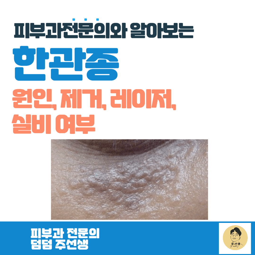 얼굴, 특히 눈밑에 흔히 생길 수 있는 한관종에 대해서 알아보았습니다. 얼굴에 잘 생기는 비립종, 피지선증식증, 쥐젖, 편평사마귀와 감별할 줄 알아야 하며, 재발을 낮추고 흉터를 최소화하기 위해서는 올바른 레이저 치료가 필요합니다. 이번 포스팅도 도움이 되셨으면 좋겠습니다. 감사합니다. 덤덤 :)