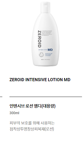 제로이드 인텐시브 크림, 로션은 화장품으로 분류되고 md 라인 제품들은 의료기기로 분류됩니다. 따라서 제로이드 엠디 4종은 전국 병원에서 처방 가능하며 실비 적용이 됩니다.