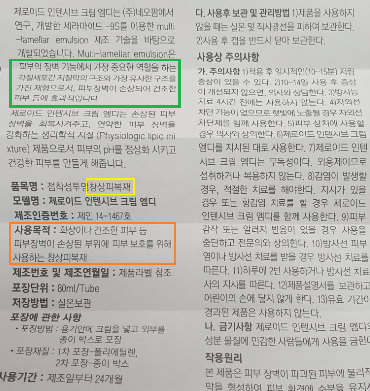 제로이드 크림, 로션은 창상피복제로 분류되며 피부장벽을 보호해주고, 피부의 수분 유지 및 손상된 피부를 보호해주는 효과가 있습니다.
